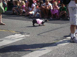 This weekend was the annual "Olympia Pet Parade". It's basically where parents help their kids dress up their animals (most of which were dogs this year) in which ever kind of costumes they like. A lot of people went with the Olympics theme this year. Some of these dogs were so funny...I have to share a few of the pics with you.